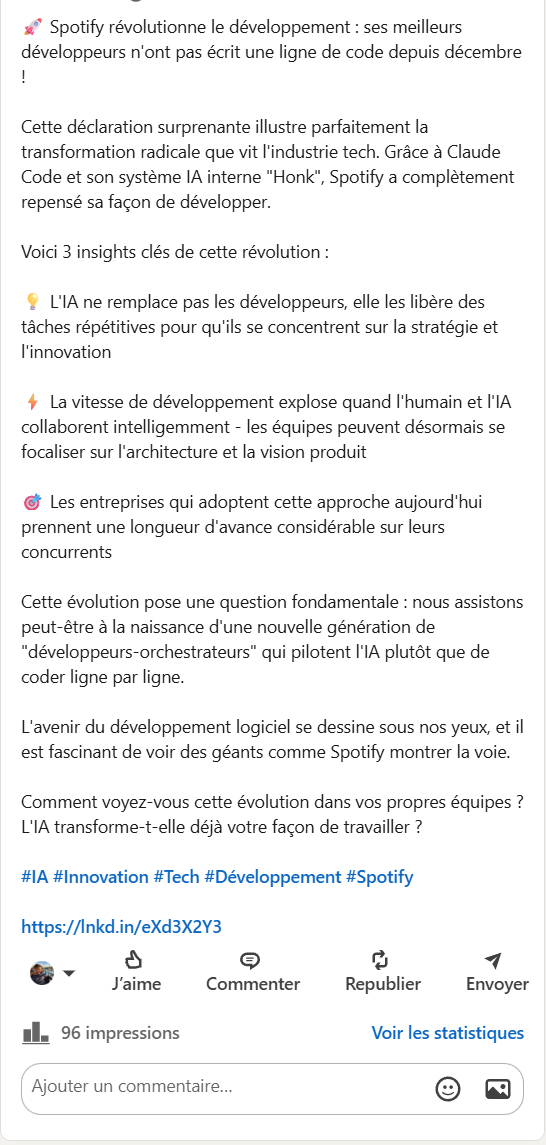 - Rédaction du prompt Claude optimisé pour des posts LinkedIn engageants